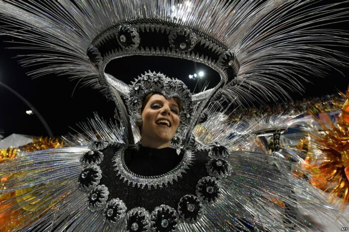 البرازيل، عرض راقص خلال الليلة الثانية من موكب كرنفال ساو باولو.