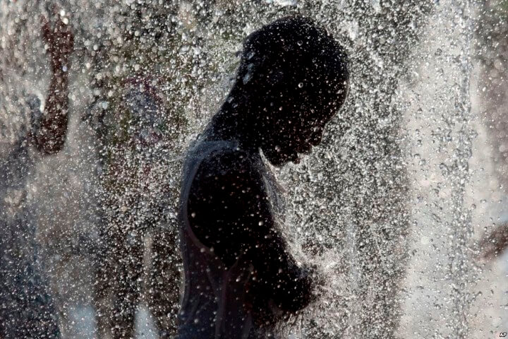الأراضي الفلسطينية، صبي من فلسطينيي الداخل المُحتل يلعب بنافورة مياه في مدينة تل الربيع المحتلة في أراضي الـ48.