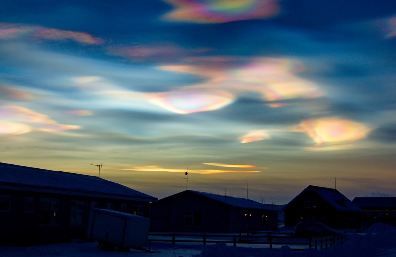 في بعض الأحيان تظهر صفائح من السُحب الملونة في فصل الشتاء بعد غروب الشمس أو قبل الفجر، هذا النوع النادر من تشكيلات الغيوم يسمى “غيوم ستراتوسفير القطبية” أو “الغيوم الصدفية”، وهي التي يمكن مشاهدتها في مناطق خطوط العرض العليا مثل أيسلندا وألاسكا وشمال كندا والدول الاسكندنافية والقارة القطبية الجنوبية، وتعتبر واحدة من أجمل تشكيلات السحب. لكن ما هو السر وراء تكوّن هذه السحب، وهل لها تأثير بطريقة أو بأخرى على كوكبنا؟