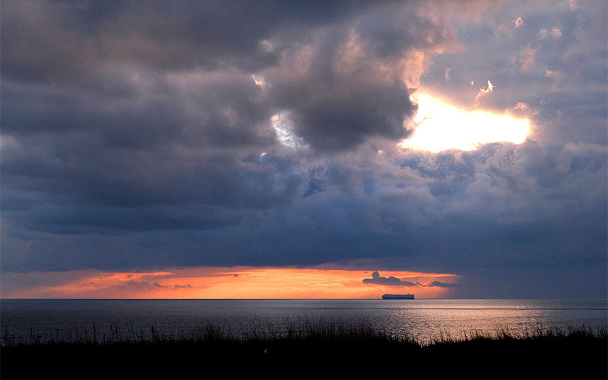 27 فبراير 2016 – إنجلترا، غيوم تتجمع في سماء الساحل الشمالي الشرقي لإنجلترا قرب إيتلي باي.