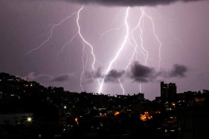 المكسيك، عاصفة برقية تضرب السماء في مدينة أكابولكو.