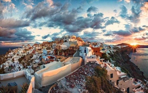 صور سياحية – غروب الشمس في سانتوريني باليونان.
